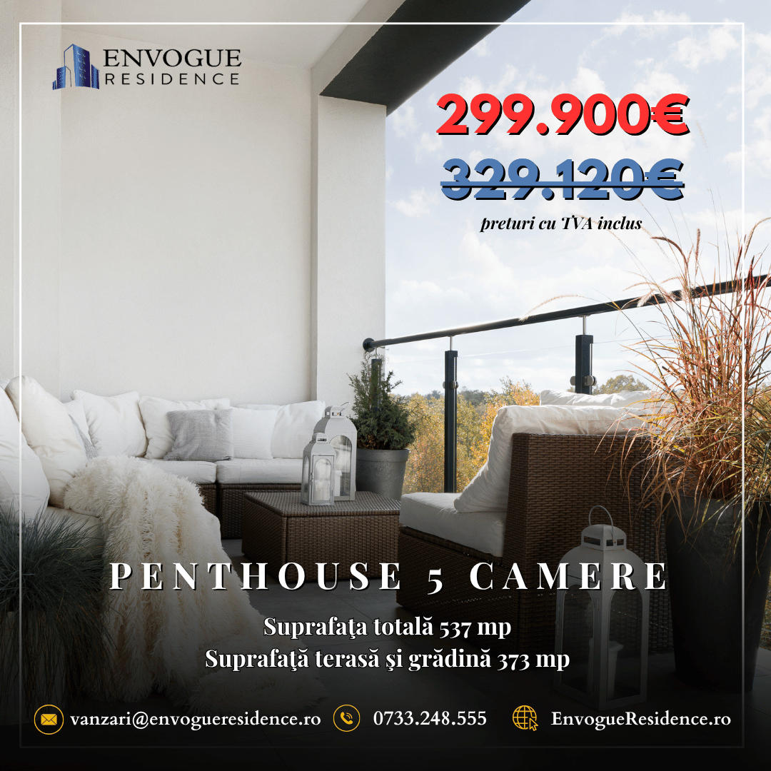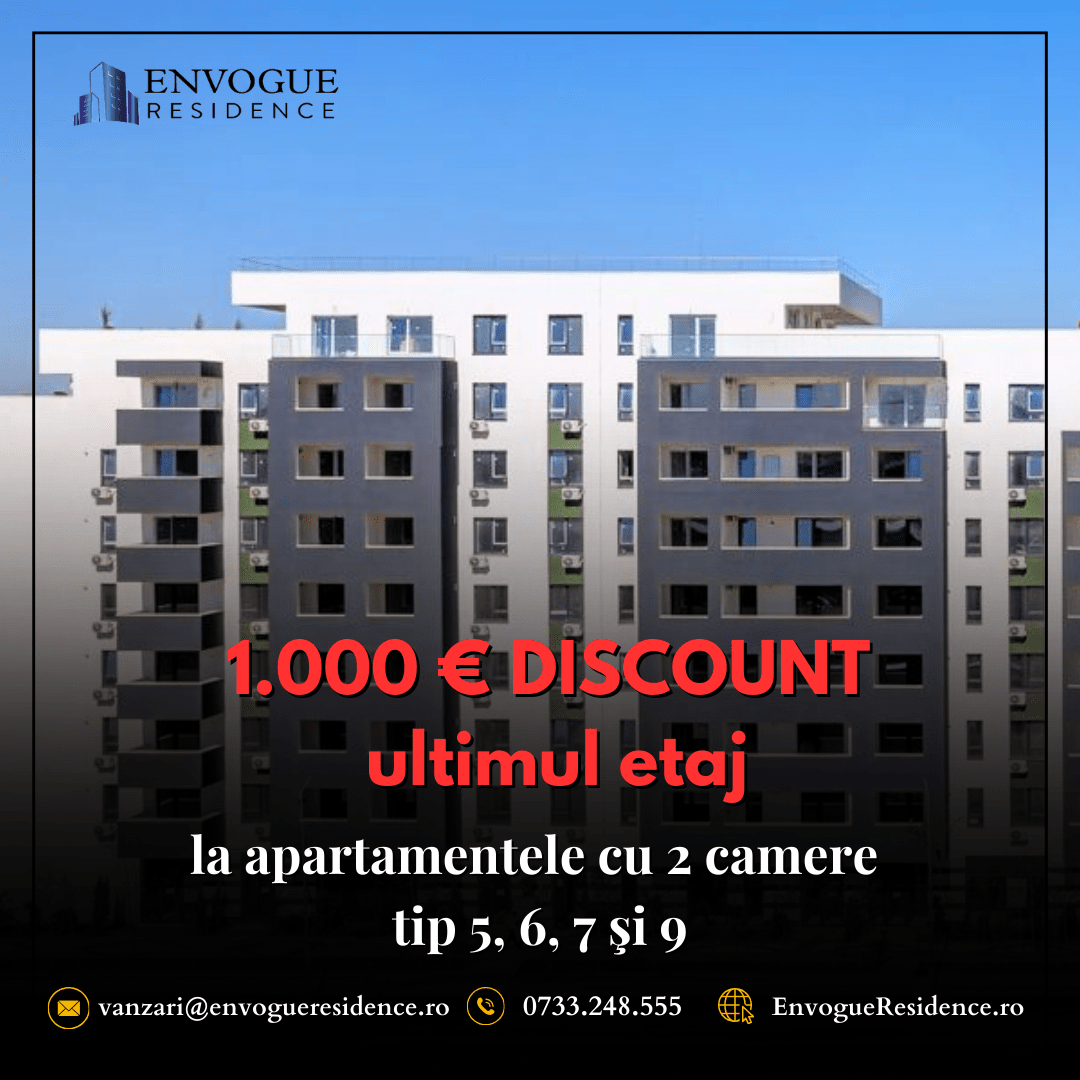 OFERTĂ SPECIALĂ pentru toate unităţile de 2 camere tip 5, 6, 7 şi 9 de la ultimul etaj din ansamblul Envogue Residence!