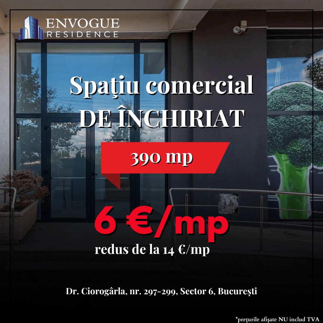 Vrei să începi o afacere sau poate s-o extinzi pe cea actuală? Închiriem spaţiu comercial de circa 390 mp din Envogue Residence Drumul Ciorogarla!